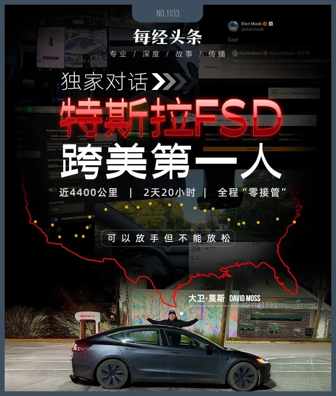 这让大卫·莫斯萌生了大胆想法:成为首个只靠FSD系统从美国西海岸驶向东海岸的人。