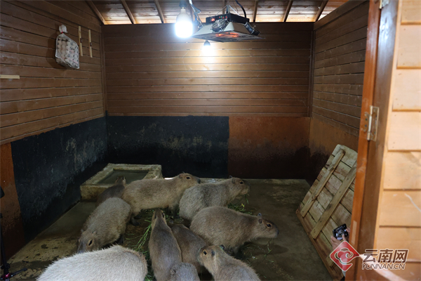 小老虎的保温灯被安装在睡垫上方,配合丰容玩具,打造暖烘烘的“专属小窝”。“卡皮巴拉”家也安装了恒温保暖装置,水豚平时从水里上岸时会回到室内,保温装置可以为其加速晾干毛发。